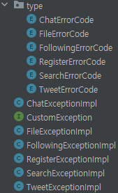 해당 enum class 를 통해 HttpStatus 와 메세지를 한눈에 보고 관리할수 있다. 먼저 이런식으로 구성을 하였다. 이 중 코드 하나만 가져오겠다.