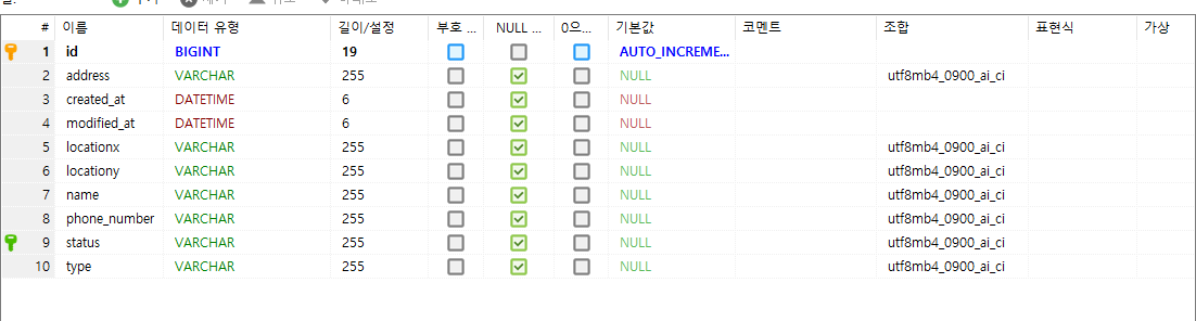 테이블 구조