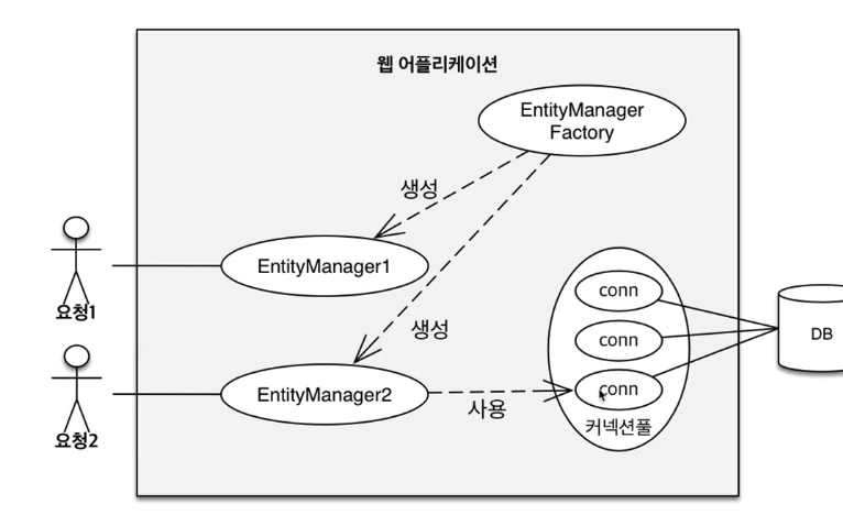 - 논리적인 개념으로 EntityManager 를 통해서 영속성 컨텍스트에 접근한다.