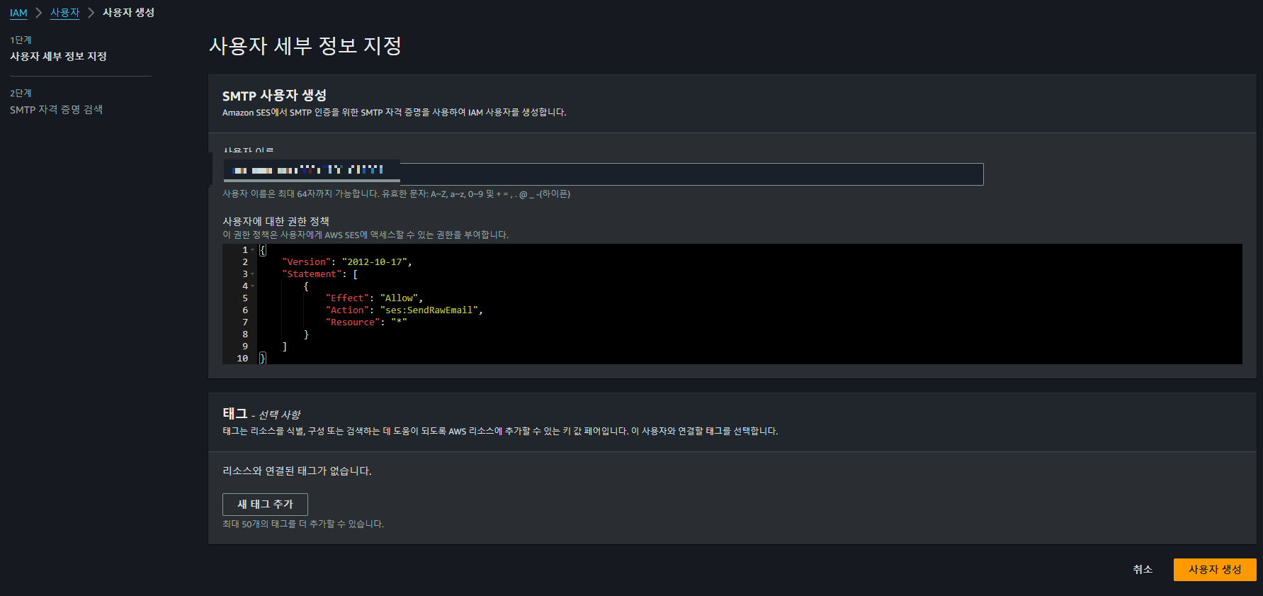 - 여기에 SMTP 보안 인증 생성을 눌러주시면 됩니다.