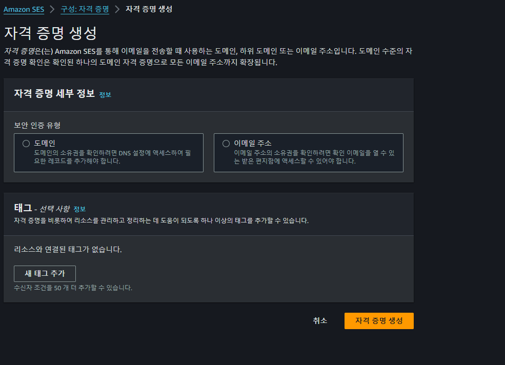 "arn:aws:ses:ap-northeast-2:계정ID:identity/도메인",