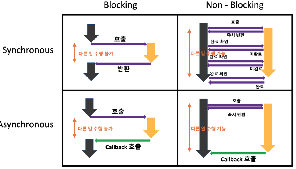 동기, 비동기, 블로킹, 논블로킹 조합