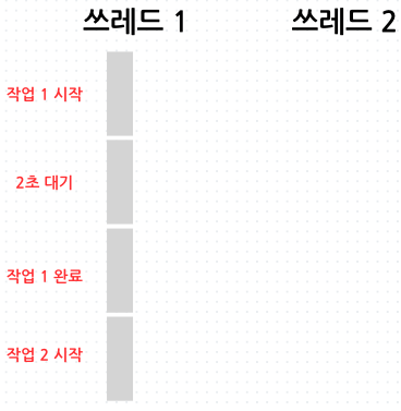- 쓰레드 1이 순차적으로 모든 작업을 수행한다.